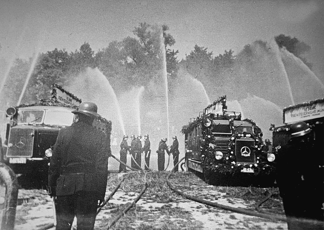 Die 1950er Jahre sind geprägt vom Aufbruch nach dem Zusammenbruch nach Ende des Zweiten Weltkrieges. Für die FF München heißt das: zunächst mit dem Mangel leben und danach den Mangel möglichst schnell beseitigen. Das galt insbesondere für den Fahrzeugpark.
